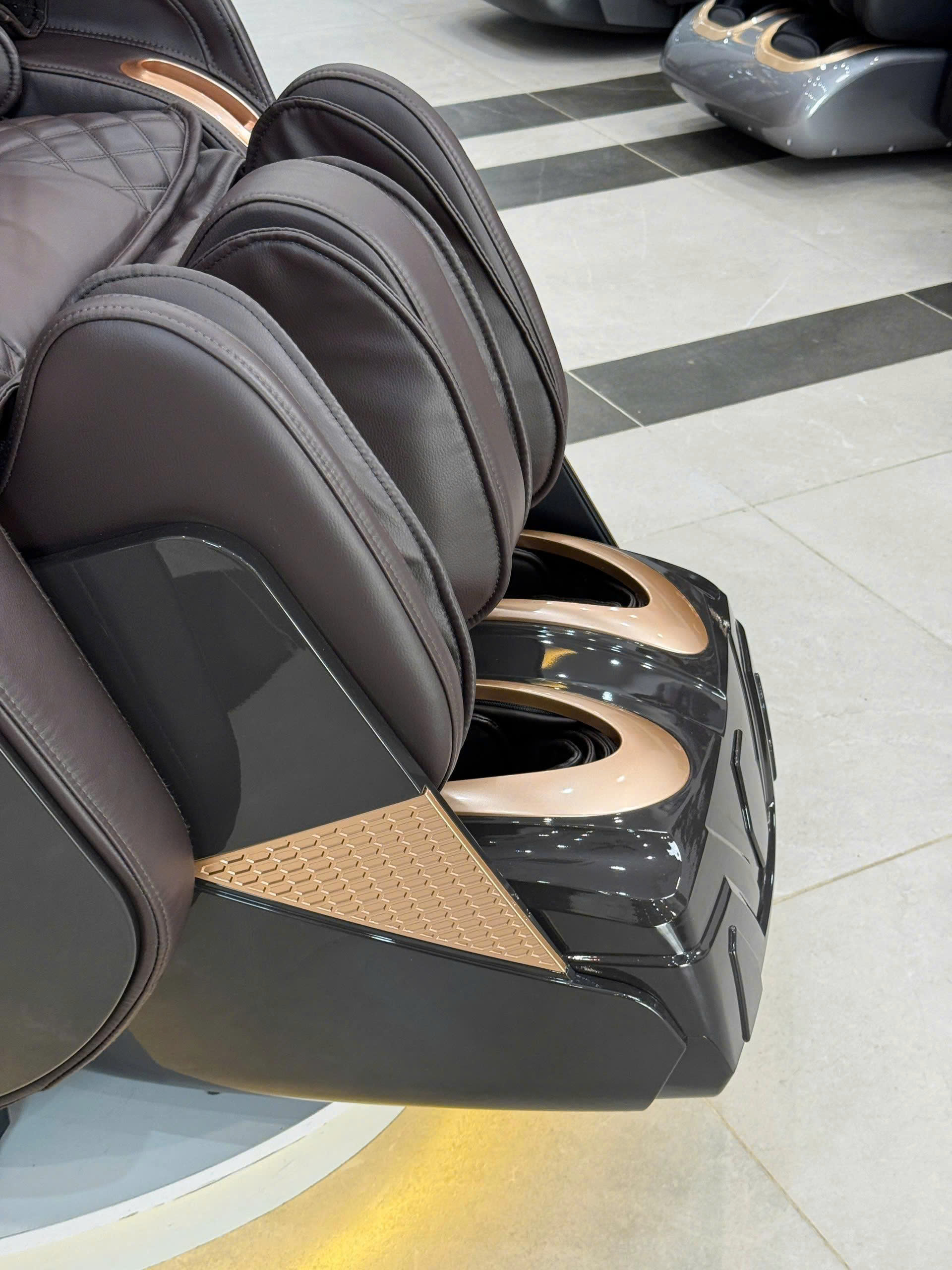 - Massage chân chuyên sâu: Cụm con lăn riêng biệt thực hiện các động tác day, ấn, cạo vào gan lòng bàn chân, kích thích các huyệt đạo quan trọng, mang lại cảm giác thư thái và cải thiện giấc ngủ.